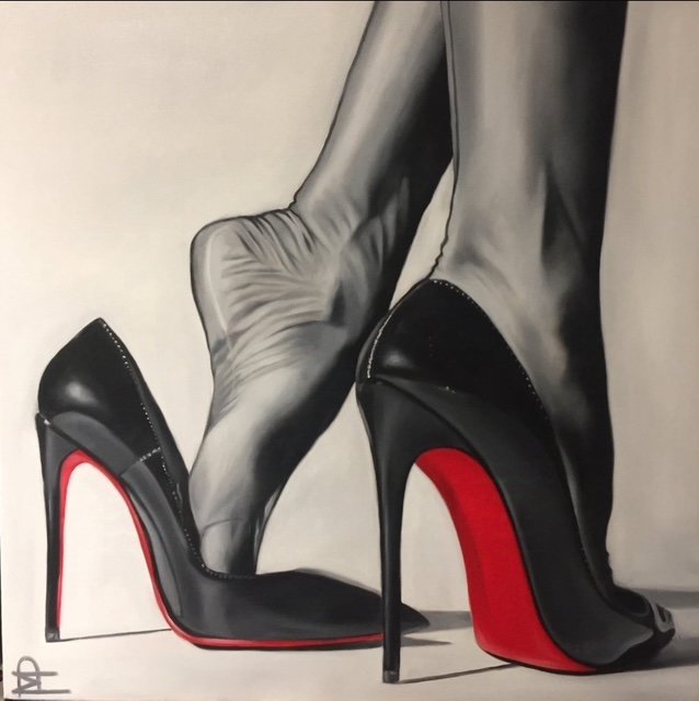 Le linee sinuose e i dettagli raffinati delle scarpe con tacco alto sono resi con una precisione che trasmette un senso di movimento e grazia.